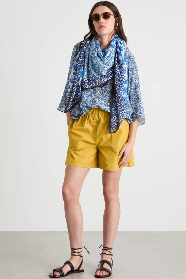 Straight-fit shorts in pure cotton poplin, with an elasticated waist, a drawstring threaded through metal eyelets, and vertical welt pockets on the front.