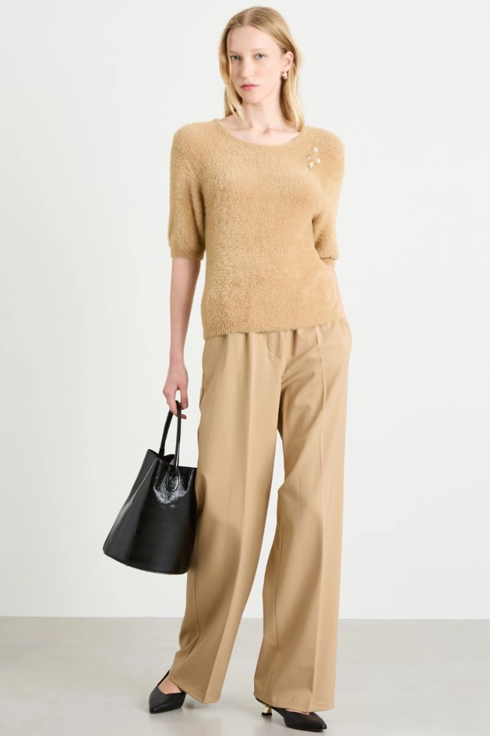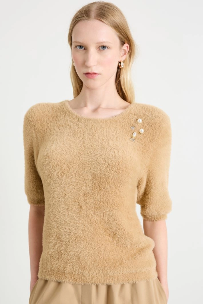 Brooch-detail slim-fit sweater
