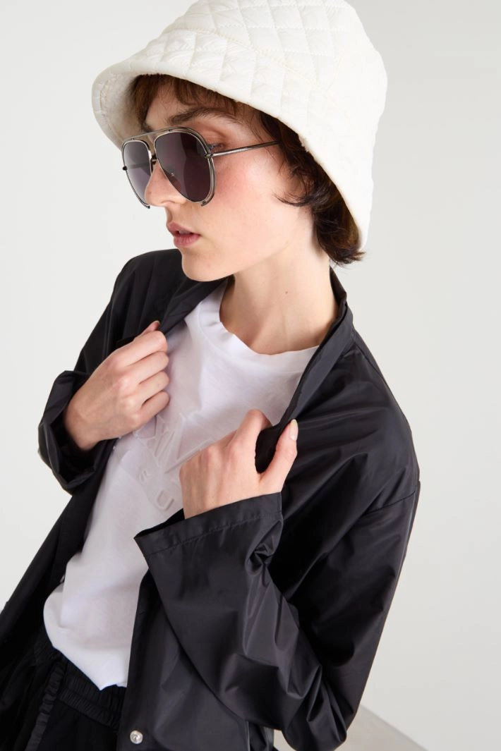 Fisherman's hat in quilted technical fabric and plush-effect interior.