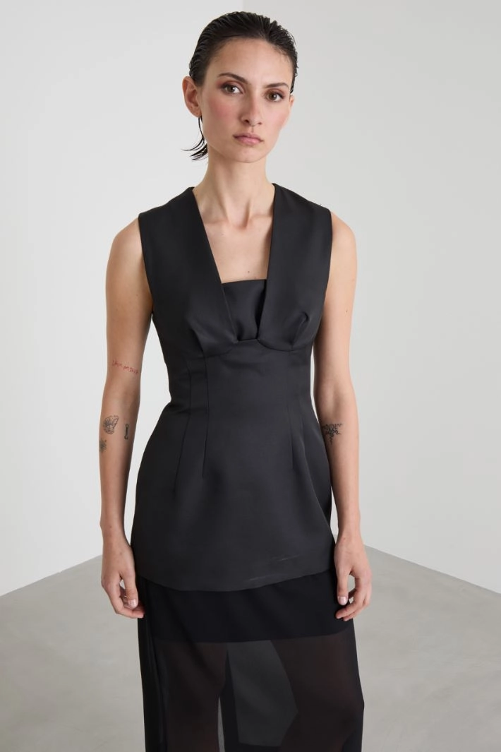 Fitted top in technical twill, with square neckline and shaped cups, sleeveless. Zip fastening on the center back.