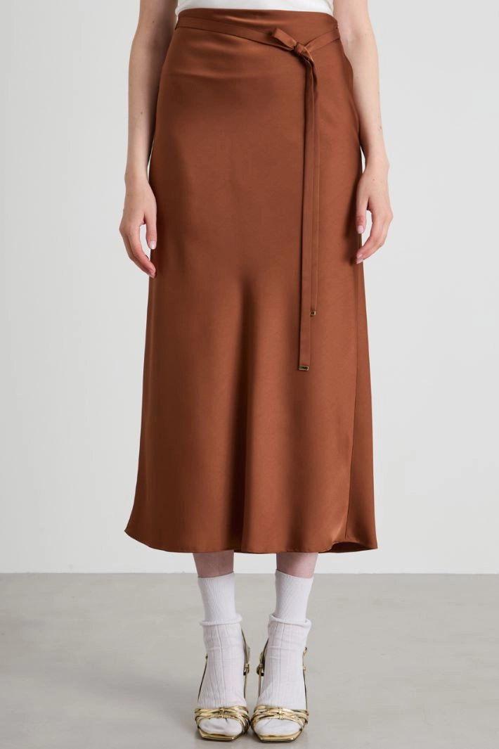 Loose-fit satin skirt with invisible zip fastening on the side and matching belt.