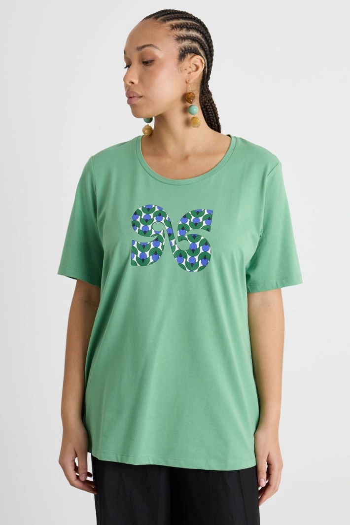 Printed jersey T-shirt with embroidery