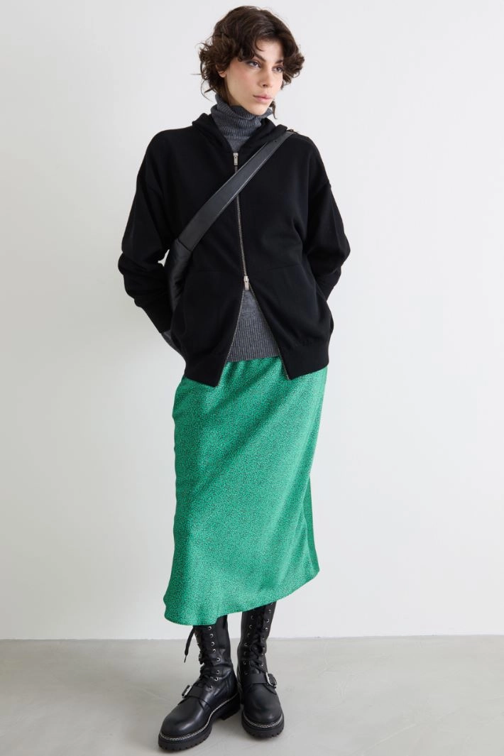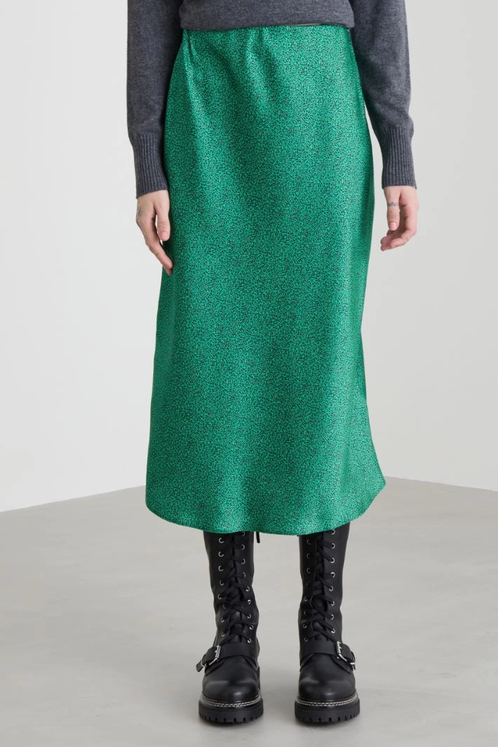 Slightly flared midi skirt in patterned twill, with elasticated insert at the waist.