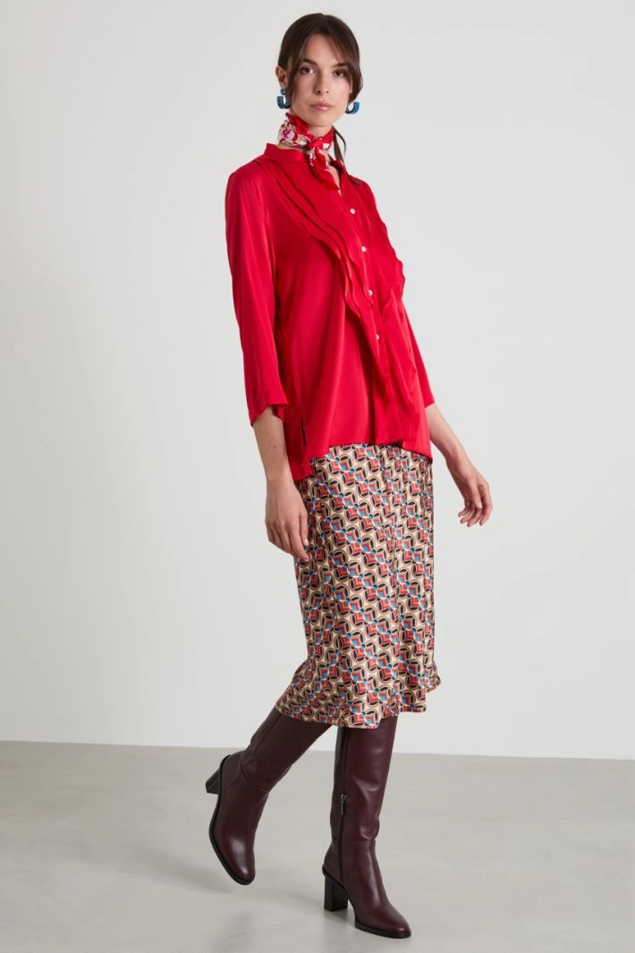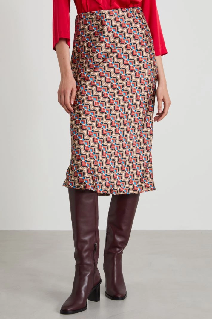 Slightly flared midi skirt in patterned twill, with elasticated insert at the waist.