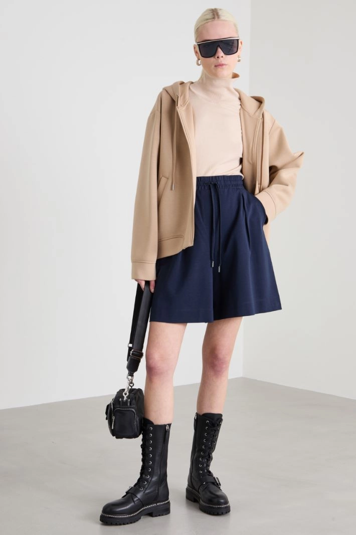 Loose-fit Bermuda shorts in cotton blend jersey, with elastic insert and drawstring waist, and French pockets.