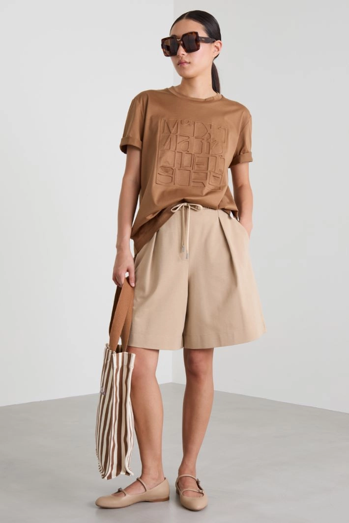 Loose-fit Bermuda shorts in cotton blend jersey, with elastic insert and drawstring waist, and French pockets.