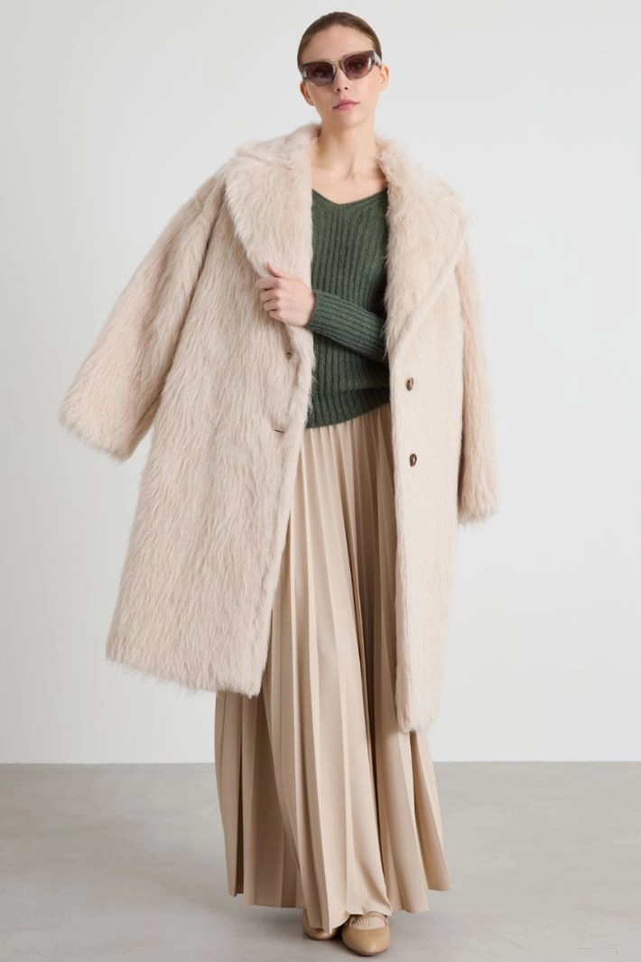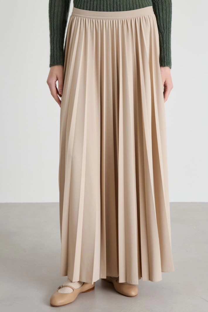 Long, wide pleated crepe jersey skirt with elasticated insert at the waist.