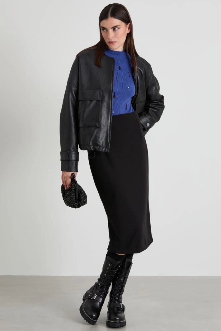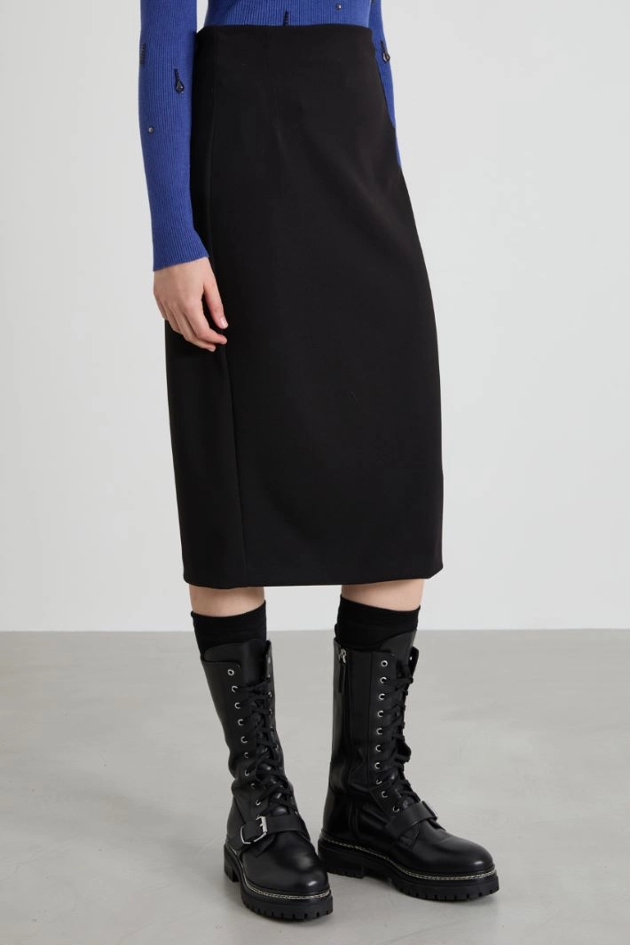 Pencil skirt in stretch crepe jersey, with slit and invisible zip fastening at the centre back.